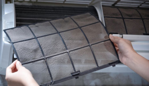 When an air filter gets clogged with dust and debris, the restricted airflow causes a buildup of moisture and bacteria growth.